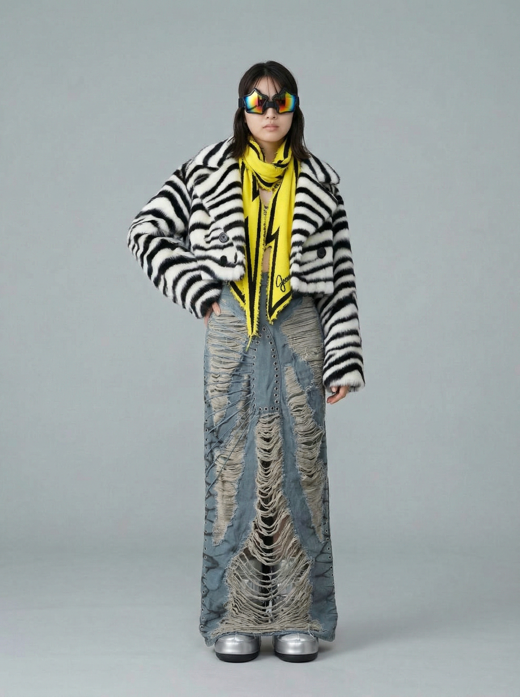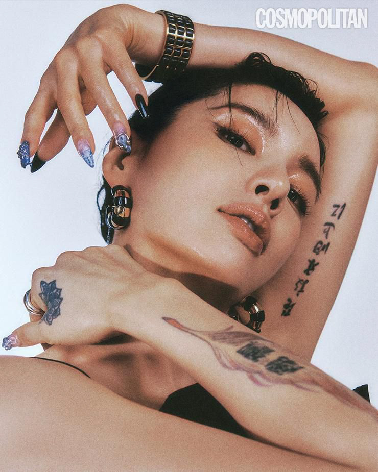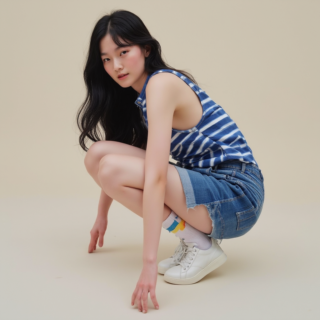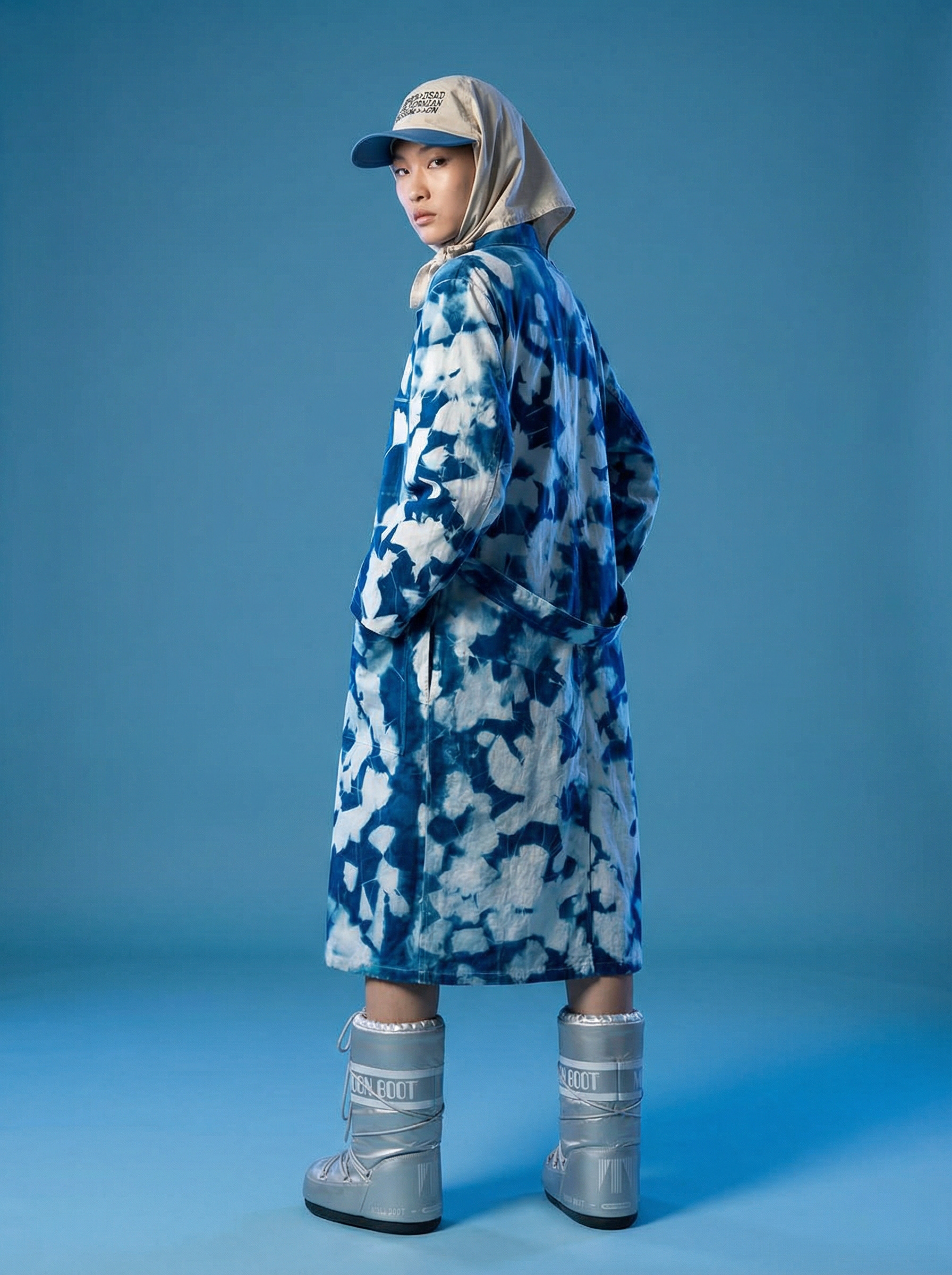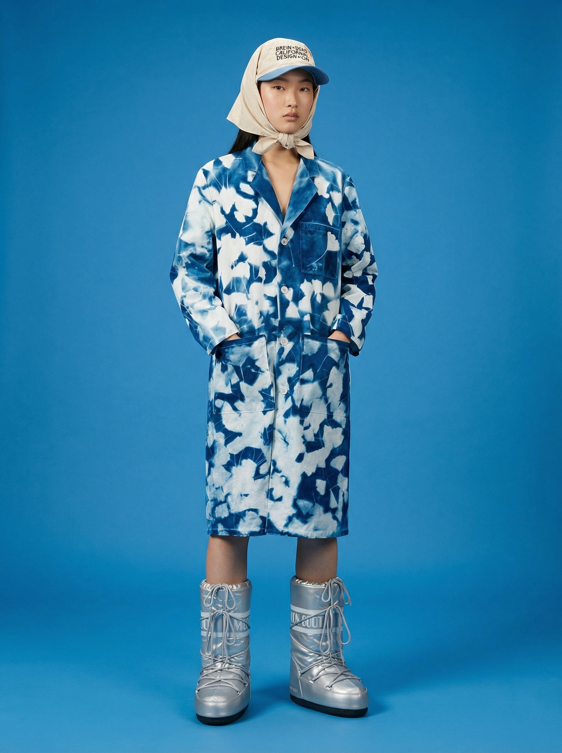 Uso de referencia de Modelo solo para testeo de consistencia en rostro, maquillaje, prenda, accesorios y tatuajes con la misma estética de la campaña BLUE.